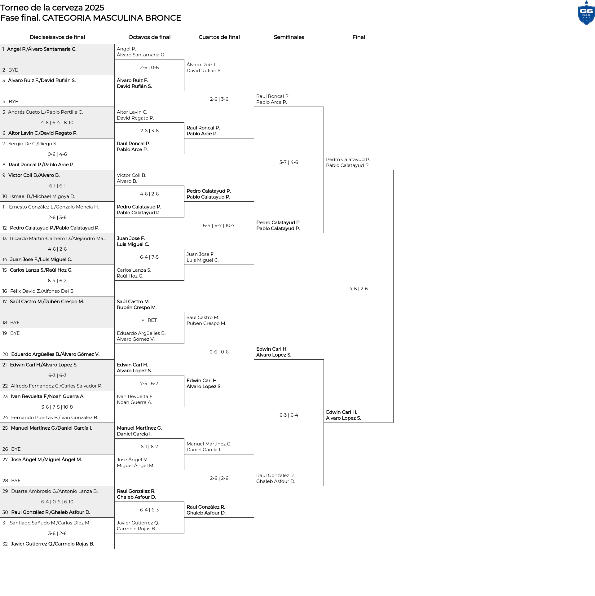 Cuadro principal CATEGORIA MASCULINA BRONCE