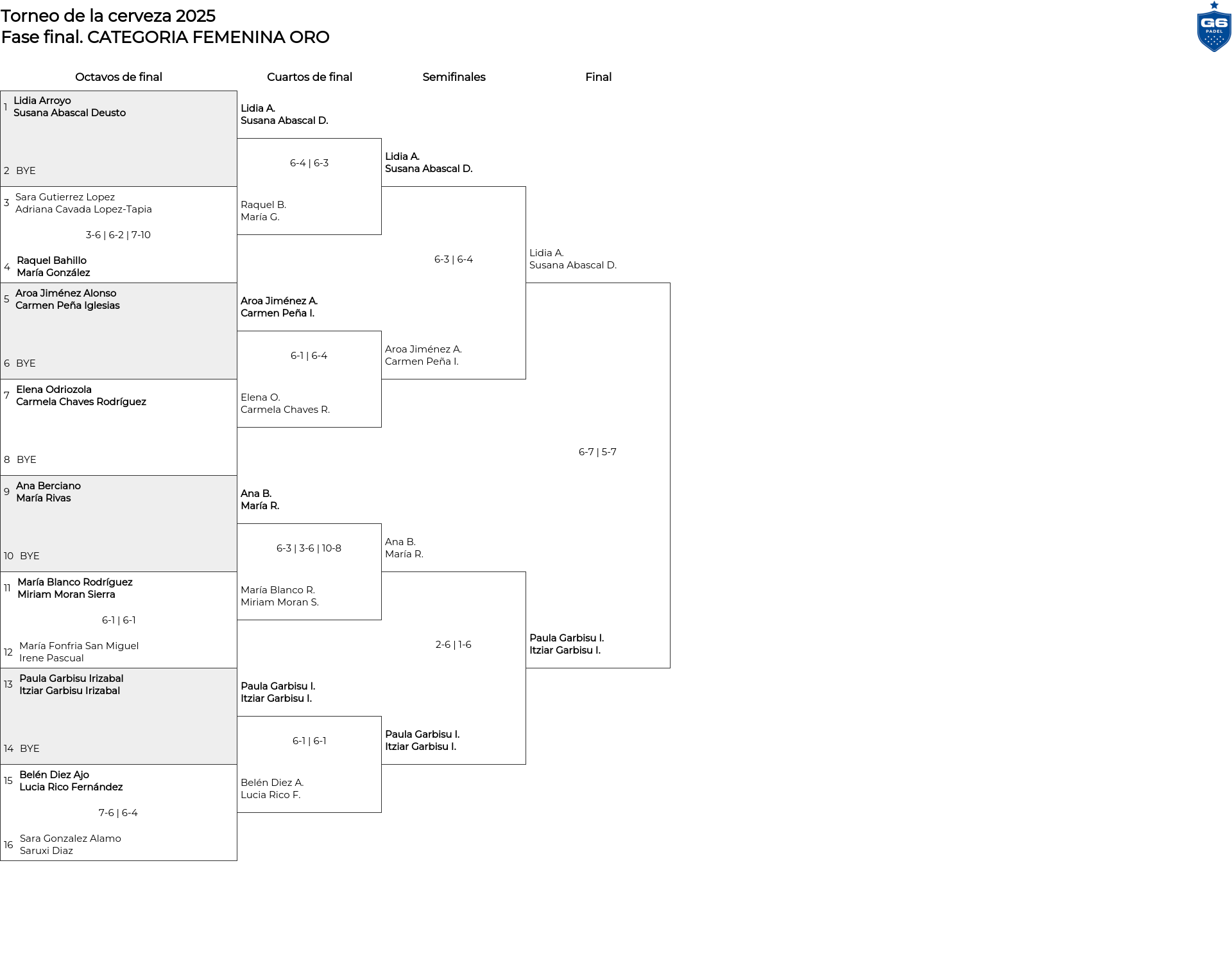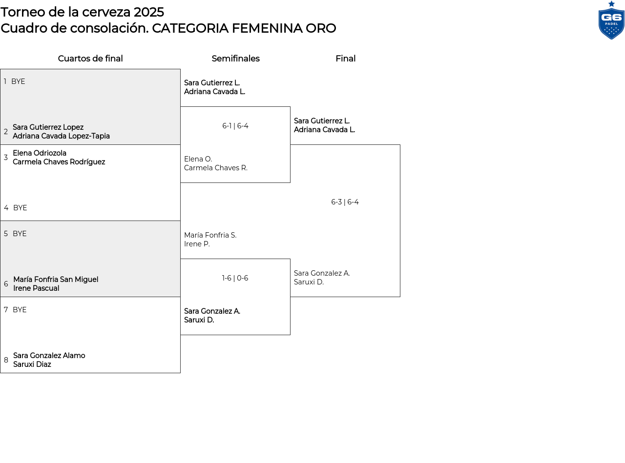 Cuadro de consolación CATEGORIA FEMENINA ORO