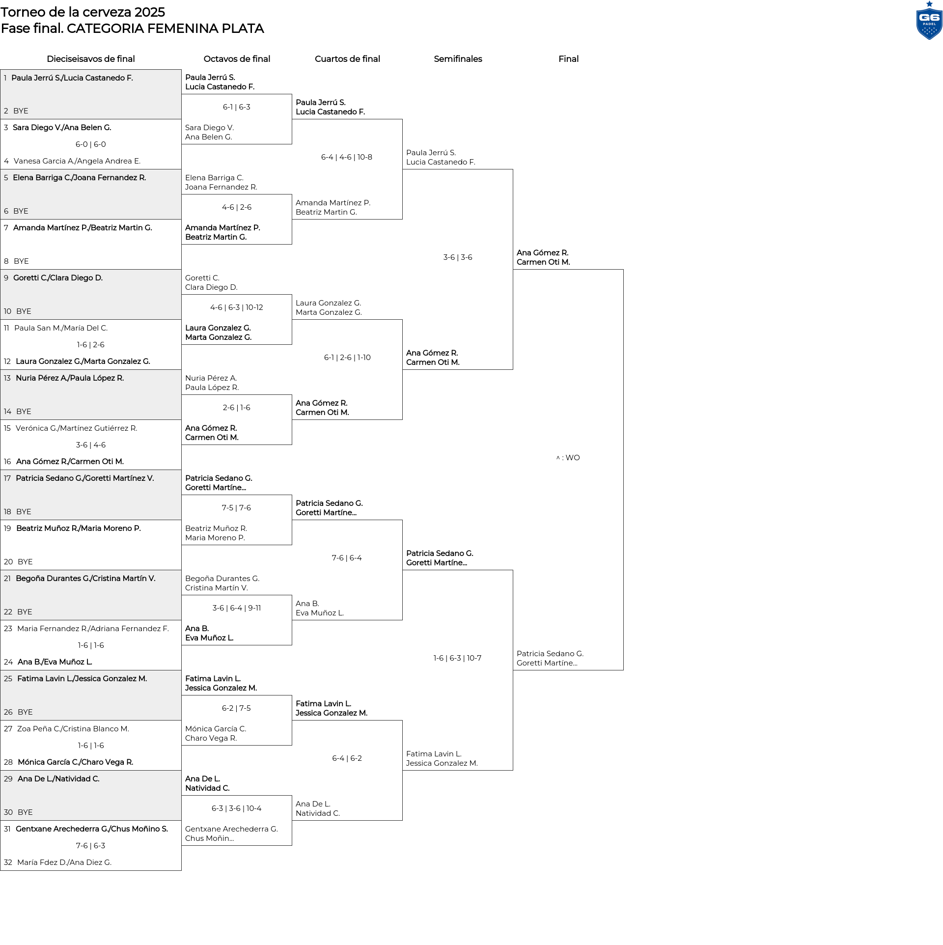 Cuadro principal CATEGORIA FEMENINA PLATA