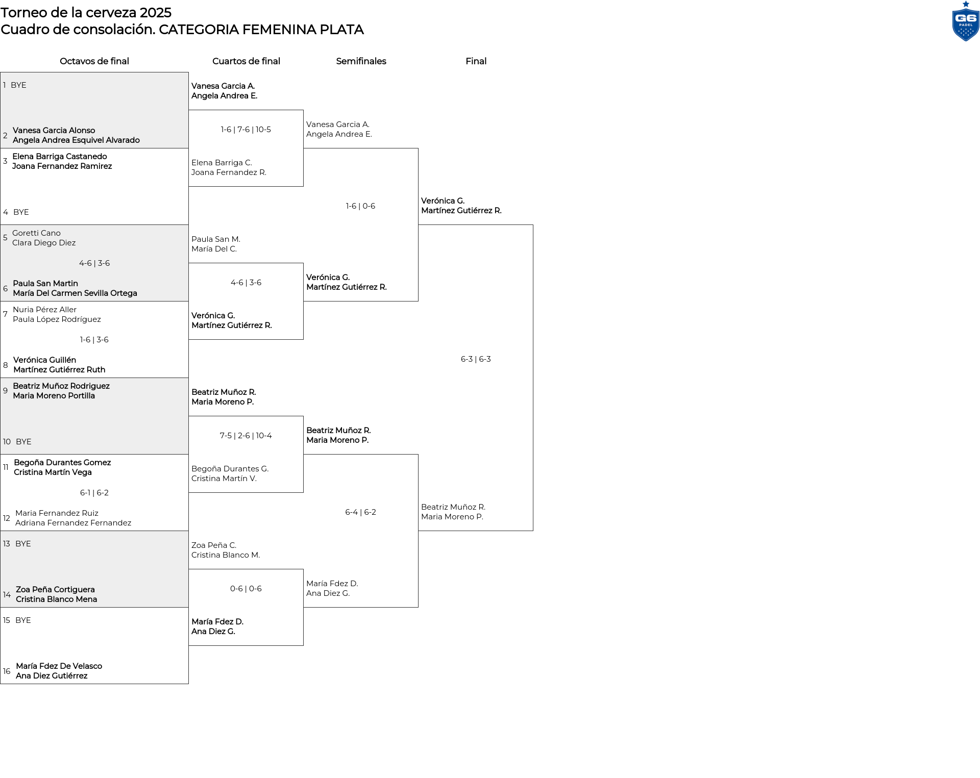 Cuadro de consolación CATEGORIA FEMENINA PLATA
