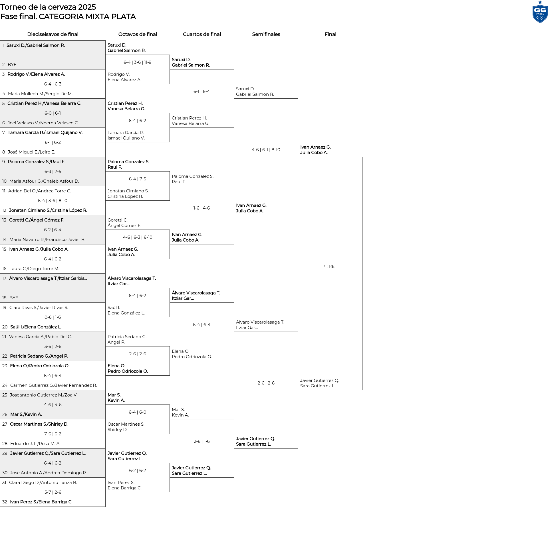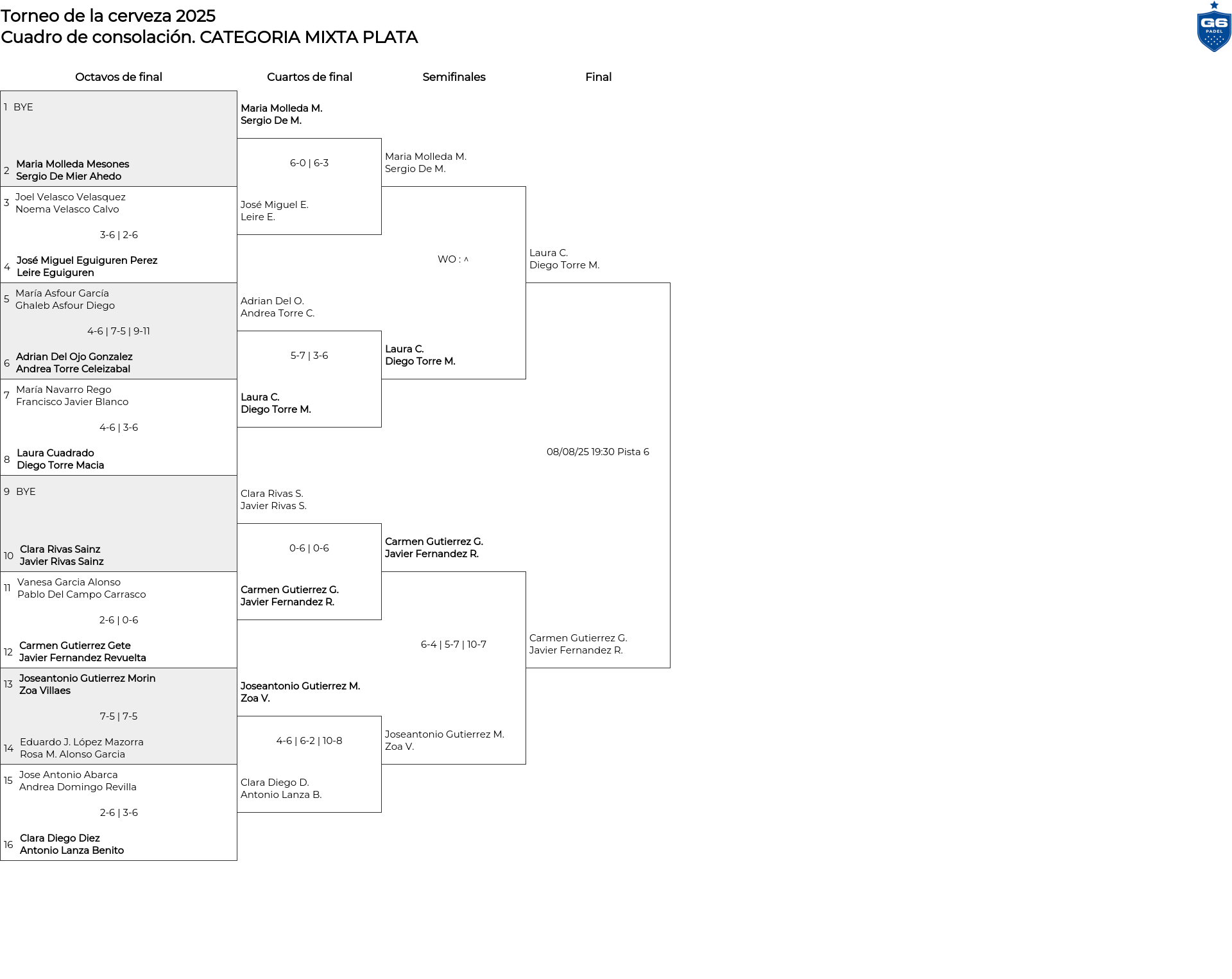 Cuadro principal CATEGORIA MIXTA PLATA